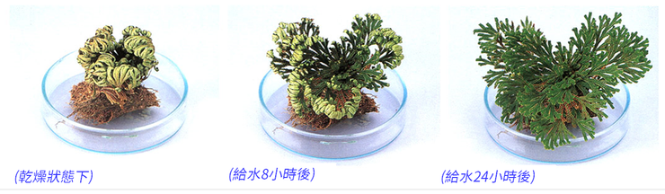 | 鱗葉卷柏:乾燥~復水狀態(引用自-海藻糖-原料介紹資料.) |